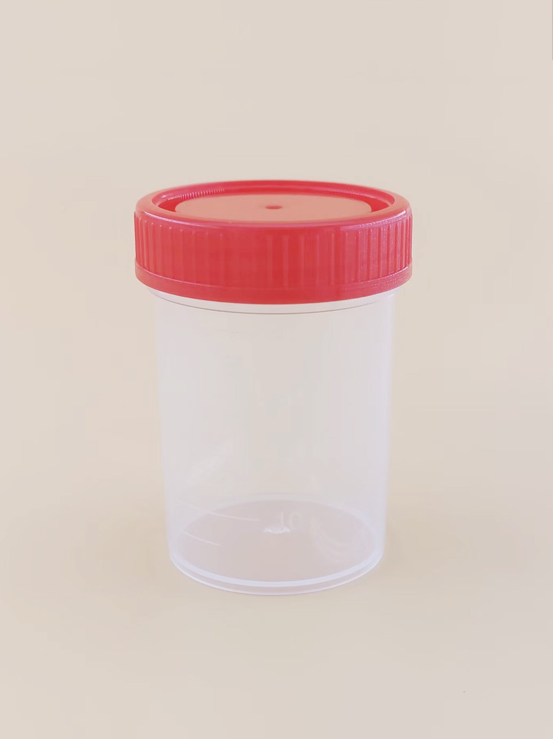 其结构简单,包括杯体和杯盖两部分。杯体标有容量刻度,杯盖采用镙纹设计,可以方便定量采集和长距离运输。